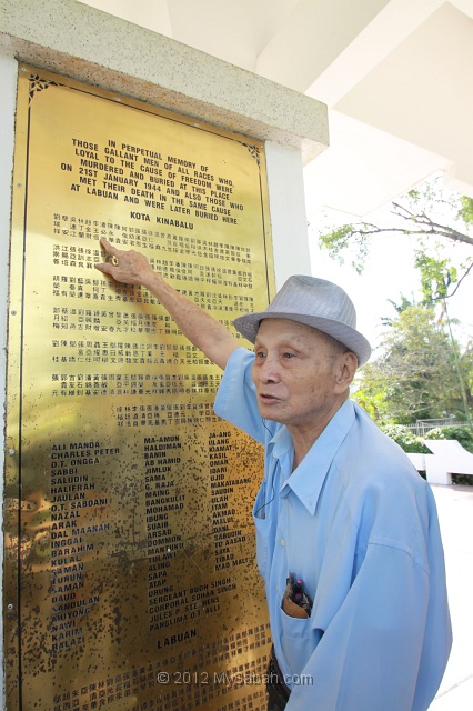 Lee Min (李明) pointing to the names of his fellow guerilla mates who were brutally executed by the Japanese army on Jan 21 1944.