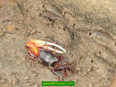 There are several species of fiddler crab throughout the warmer parts of the world. You can see them easily, thousands of them, in the mangrove forest.