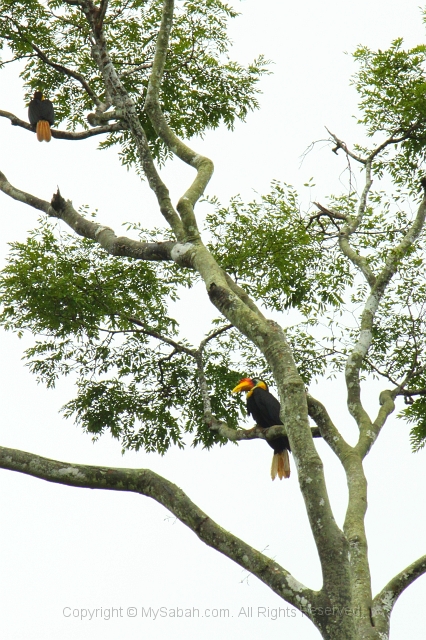 Wrinkled hornbills at Kinabatangan River, Sabah, Malaysia Borneo