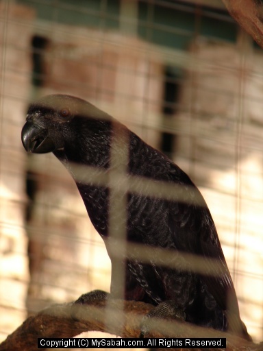 Black parrot in Lok Kawi Wildlife Park (Lokkawi Zoo), Sabah, Malaysia Borneo