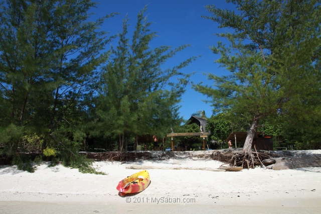The beach in front of Mari-Mari Backpackers Lodge, Mantanani Besar Island
