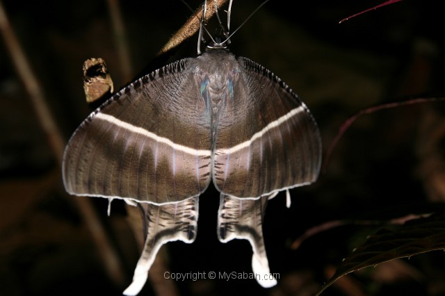 New born butterfly waits for wings to dry. Tawau Hills Park (Taman Bukit Tawau), Sabah, Malaysia