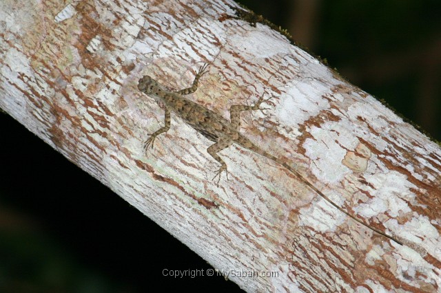 Gliding lizard in Tawau Hills Park (Taman Bukit Tawau), Sabah, Malaysia