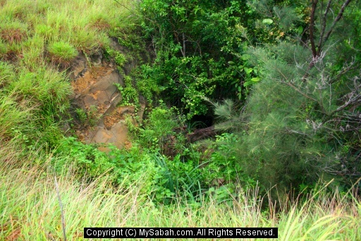 An opening behind the hill. There is a cave in it.