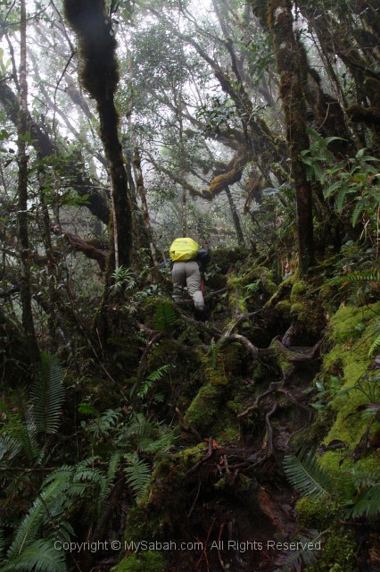 Steep trail of Mt. Trus Madi is also full of entangled roots