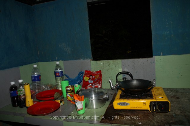 The kitchen next to the cabin of Mt. Trus Madi. You need to bring your own food, plate, spoon, cup, gas stove and cooking utensil. There is no restaurant around.