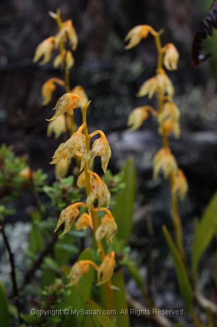 Wild Bulbophyllum orchid on Mt. Trus Madi, the second highest mountain of Malaysia