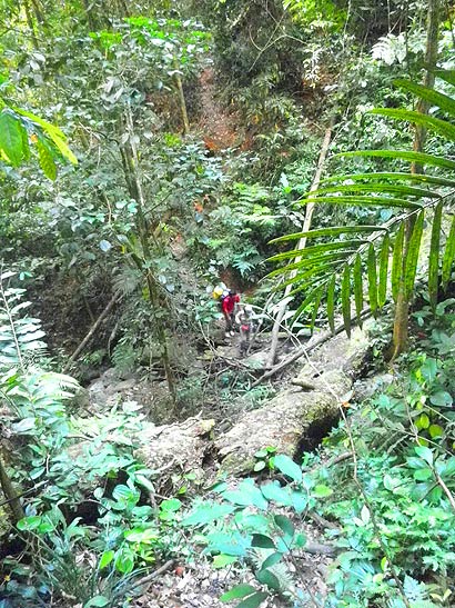 It is after KM4 where our hardship starts, the trail doubles in steepness and we were slowing down. We were supposed to camp at Wuluh Campsite (KM6), but had to stay at KM5 at 5pm, due to the vanishing daylight.