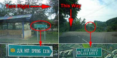 Clear? To get there from Tawau town, look for “Jalan Air Panas” and go straight, until you see the “JLN. HOT SPRING EXTN” sign at your right (see picture below), turn into that road, go straight again, when you see the “J. AYER PANAS LAMA BATU 3” sign, go straight for 50 meters and you will see a small wooden bridge next to the roadside.