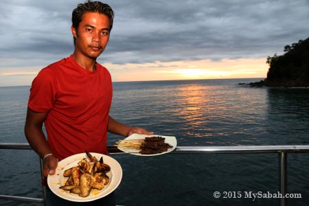 Even if the sunset wasn’t nice, we still had nice food onboard. Yeah, check out that BBQ lamb, it’s the one of the highlight man.