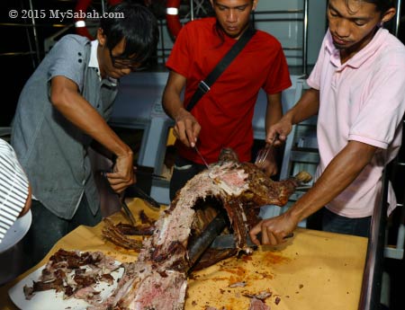 Though we have no BBQ fish, there’s something better waiting for us. Our BBQ lamb is ready. We started second round of feasting. The lamb was roasted slowly, so the meat was kept juicy inside, very yummy.