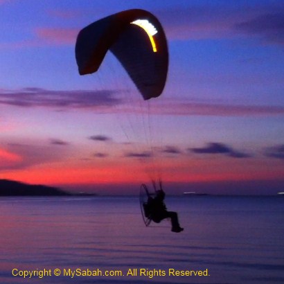 However, as paramotor can reach a few thousands Meters high, pilots need to get permission from DCA (Department of Civil Aviation) before they start a flight close to busy routes of airlines. DCA will inform other planes that you will fly near their routes, to avoid accident. To try paramotor in Sabah, you may join the Sabah Paramotor Club.