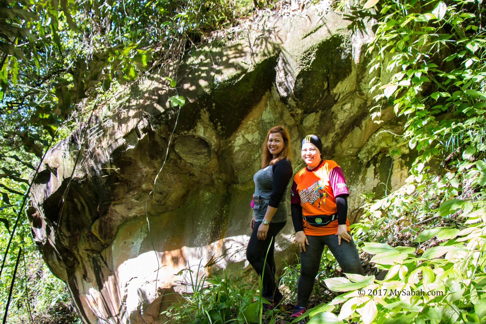After 23 minutes of painfully slow move on steep and slippery trail, Azlan stopped at a big rock and said “It’s here.” I didn’t see any boat rock. He added, “You are on top of the boat rock. You need to descend to the side to have a better look.”