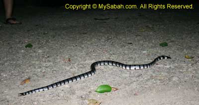 Snake phobia can go to bed early then. Since Pulau Banggi is such a remote place with nothing to do at night, I can sit there and watch them for whole night. The area is dim and not well-lighted, so you can step on the sea snake accidentally. It venom is so potent that one drop of it can kill 7 people, 3 times more poisonous than cobra and can kill us within 2 hours! But its head is very small, unlike most other poisonous snakes.