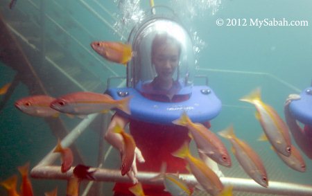 Have you ever imagined walking under the sea without gill? Well, it is not a dream, you don’t even need to know how to swim or have special skill such as scuba diving. I had tried sea walking last week at Borneo Reef World, the largest reef activity pontoon in Southeast Asia (second largest on the world). This pontoon is a floating platform on the sea off Sapi Island of Kota Kinabalu (KK), Sabah, Malaysia.