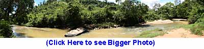 They said in the past, there were two hunters got a wild boar. One of them cleaned it and removed its organs next to this river. It was a rainy day, so this guy went away to get his friend to help. When they both came, the wild boar was gone and there was a new big rock there, so they thought the boar was turned into this rock.