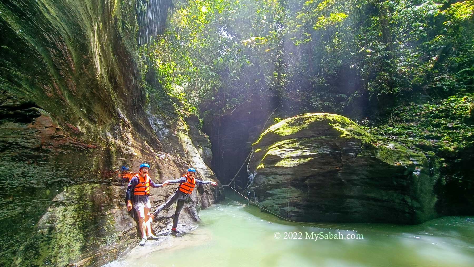 Though I struggle a bit with the cold and strong current, I feel no regret the moment I see the gorgeous rock walls in the canyon. Like most people say, it looks so unreal and doesn’t resemble any place in Sabah.